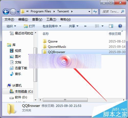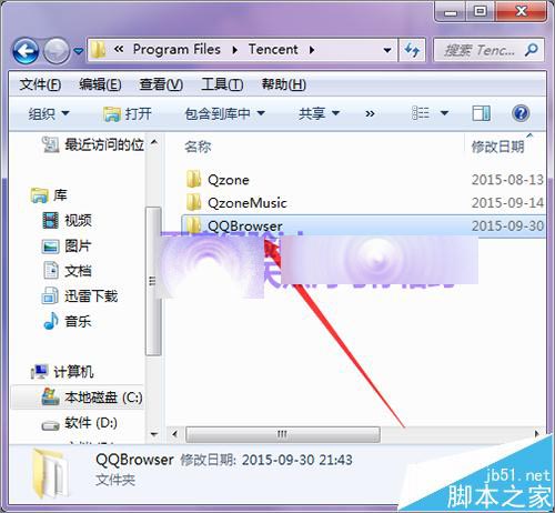 4、打開Tencent的文件夾后,在這個列表中,可以看到這里有一個QQBrowser的文件夾。這個文件夾就是qq瀏覽器的文件夾。