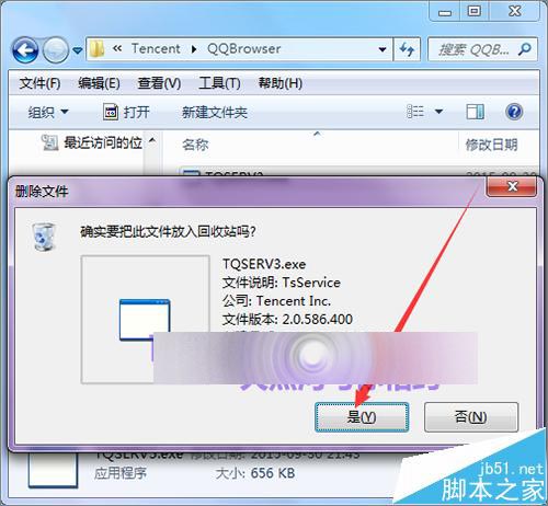 8、接著在彈出的刪除文件的界面中選擇是。就可以把它刪除掉。這時,可以看到這里沒有其它的文件。這時點擊回到上面的Tencent。回到這個文件夾中。
