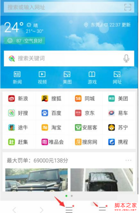 進入瀏覽器后,點擊下方中間圖標