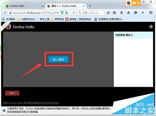 5、該好友通過我們發給他的邀請視頻聊天的鏈接,用瀏覽器頁面將鏈接打開,會出現一個聊天的頁面,提示“加入通話”,點擊這個按鈕,如圖所示。