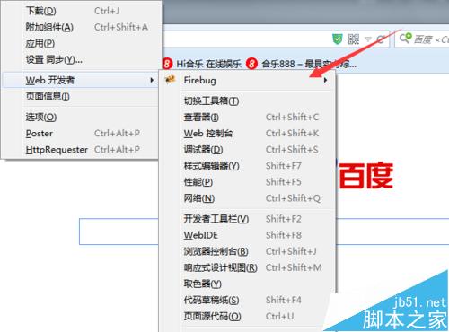 3、進(jìn)入到下一級(jí)的菜單中,可以看到firebug的選項(xiàng),點(diǎn)擊進(jìn)入。