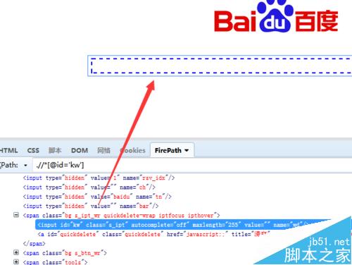 7、選中完輸入框之后,在網(wǎng)頁的源代碼中會(huì)精確定位元素的信息,根據(jù)查看具體信息內(nèi)容來對(duì)元素上的操作。