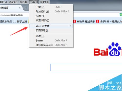 2、選中完菜單中工具后,彈出了一個(gè)下拉的菜單中進(jìn)行選中web開發(fā)者。