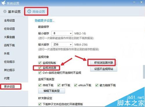 5、高級設置里面,我們選擇更多設置里面監視瀏覽器,然后修復瀏覽器關聯。