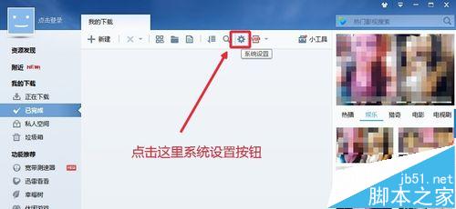 3、打開迅雷軟件以后,我們點擊這里的齒輪圖標打開系統設置界面。