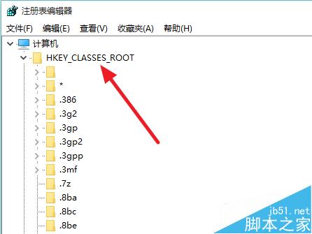 3、打開注冊表的HKEY_CLASSES_ROOT注冊表文件夾。