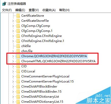 4、向下拖動找到帶有chrome字樣的Chrome.QCHRG3OHZRH22FKDD2O3YV5RYA和ChromeHTML.QCHRG3OHZRH22FKDD2O3YV5RYA這兩個文件夾。