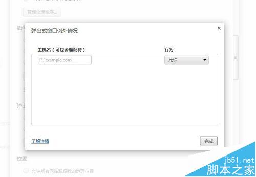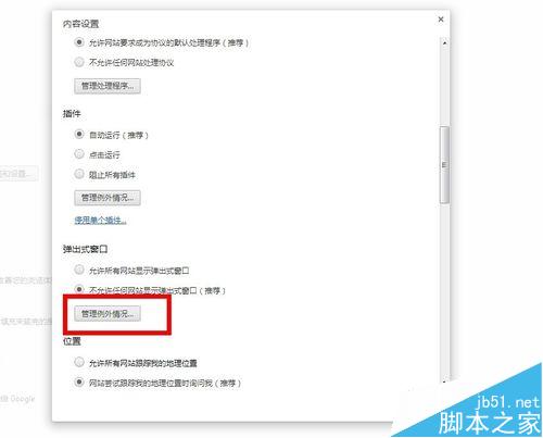 6、如果你只想要允許特定網(wǎng)站彈出窗口,請在“彈出式窗口”部分,選擇“管理例外情況”。輸入你不希望 Chrome 自動攔截的網(wǎng)站列表。