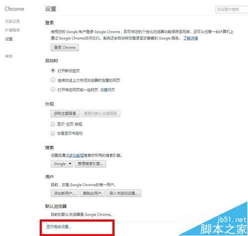 3、在頁面底端找到并點擊“顯示高級設置”。