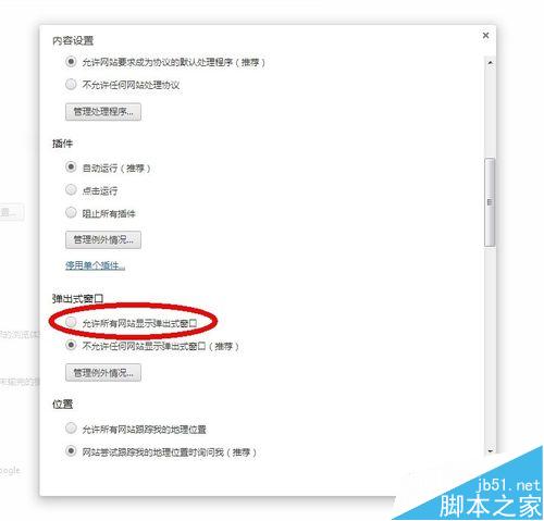 5、在“彈出式窗口”部分,選擇“允許所有網(wǎng)站顯示彈出式窗口”。