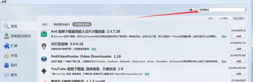 4、如果沒有我們需要的插件,可以在右上角的搜索框中輸入我們要安裝插件的關鍵詞,來搜索相應的插件,比如要安裝視頻播放的插件,只需要輸入“視頻播放”就會顯示出相關的視頻播放插件列表