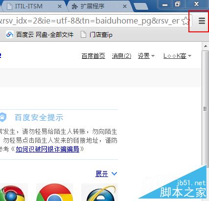 2、打開谷歌瀏覽器,點擊瀏覽器右上角的“自定義及控制Google Chrome”。