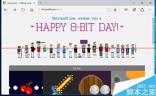 怎么利用Win10Edge瀏覽器玩微軟官網(wǎng)藏彩蛋8位游戲呢?在9月14日為了記住“8位節(jié)”,微軟在其英文官網(wǎng)埋藏了彩蛋,用于慶祝這具有劃時(shí)代意義的“8位節(jié)”,開(kāi)啟“彩蛋”游戲后,整個(gè)屏幕將被“8位”刷屏,同理還可以看到可愛(ài)又熟悉的“8位微軟忍者貓”,整個(gè)界面特別有看點(diǎn)。下面小編就與大家一起來(lái)開(kāi)啟“微軟官網(wǎng)藏彩蛋”之秘吧。
