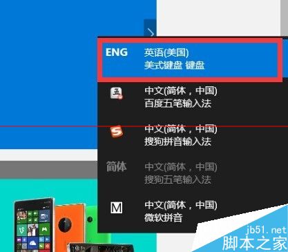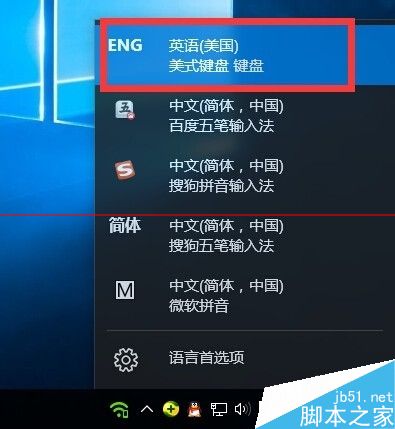 2、為了確保可以正常查看“微軟藏彩蛋”8位游戲界面,我們需要將“系統(tǒng)輸入法”設(shè)置為“英文”狀態(tài):點(diǎn)擊任務(wù)欄右下角的“輸入法”圖標(biāo),從其擴(kuò)展菜單中選擇“英語(yǔ)(美國(guó))”項(xiàng)。
