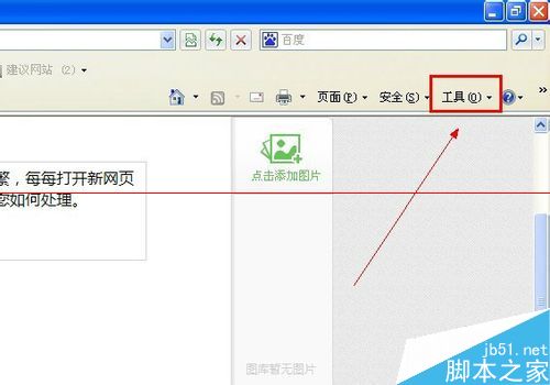 1、小編在遇到這個(gè)問題的時(shí)候很是頭疼,所以查閱了一些相關(guān)資料,把最簡(jiǎn)單解決問題的辦法告訴您。首先找到ie瀏覽器的菜單的“工具”按鈕,如下圖。