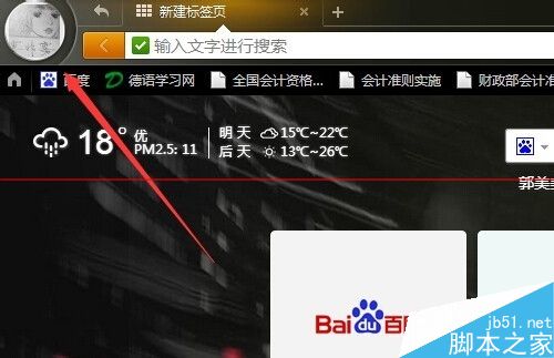 2、登錄。打開獵豹瀏覽器后,如果你以前注冊并登錄了獵豹賬號,那么左上角會有你登錄的圖標(biāo)。