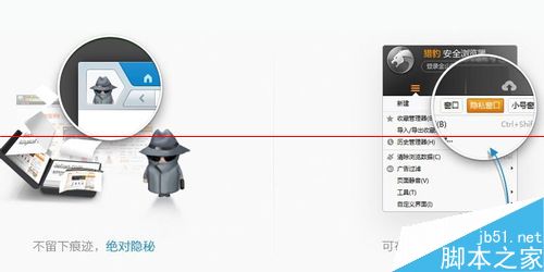 6、隱私窗口。如果你想要保護隱私,不想讓其他人看見在網(wǎng)上瀏覽網(wǎng)頁的歷史,那么你也可以打開隱私窗口,打開方法和打開小號窗口類似。