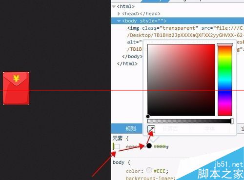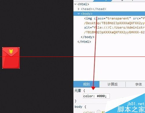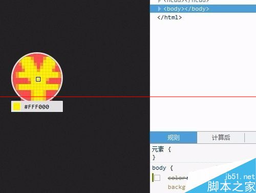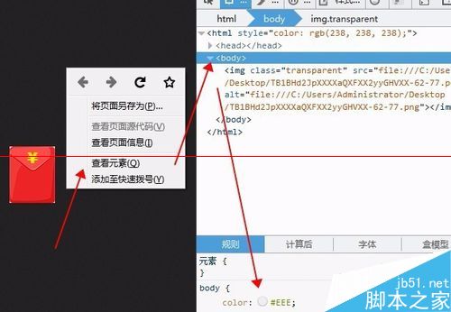 3、打開圖片后在瀏覽器里鼠標>>右擊>>查看元素,點擊<body>標簽就可以找到顏色代碼