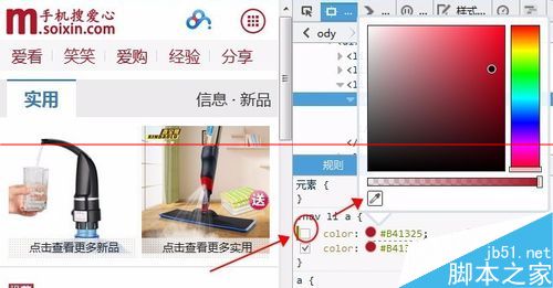 1、打開任意網站右擊查看元素,點擊箭頭有些瀏覽器是放大鏡標志從頁面獲取一個元素隨便去取個字單擊,在規則樣式中找到一個顏色代碼。后面其他步驟同上4.5.6.7可以提取瀏覽器中的任何部位