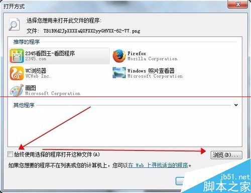 1、選擇要采樣的圖片用瀏覽器打開,將鼠標箭頭移到圖片上右擊選擇打開方式選擇瀏覽器,沒有瀏覽器圖標的先到默認程序進行設置。