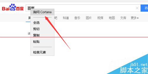 4、選中搜索文字右擊選擇詢問小娜,即可查看小娜搜索結果: