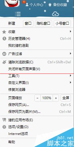 1、請打開獵豹瀏覽器主頁,如圖。這時候請單擊瀏覽器最左上角的個人賬戶頭像,我的是一個圣誕老人頭像。