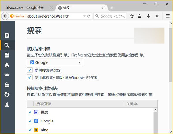 然而并不是每個(gè)人都習(xí)慣使用必應(yīng),近日,Mozilla發(fā)布了Firefox 40瀏覽器,新版除在界面上更好地適配Windows10外,還包含另一項(xiàng)針對(duì)Win10進(jìn)行優(yōu)化的功能。在Win10中,當(dāng)用戶將火狐(版本大于40)設(shè)置為默認(rèn)瀏覽器后,用戶在任務(wù)欄中調(diào)用火狐搜索時(shí),F(xiàn)irefox會(huì)自動(dòng)轉(zhuǎn)換為使用用戶設(shè)置的默認(rèn)搜索引擎進(jìn)行搜索,而不再是系統(tǒng)默認(rèn)的必應(yīng)搜索引擎。