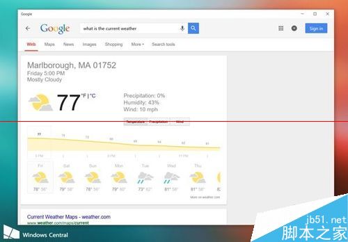6、此外,Google搜索應(yīng)用還具有“智能搜索”功能,當(dāng)我們搜索“天氣”情況時(shí),會(huì)自動(dòng)定位當(dāng)前地理位置并顯示當(dāng)前天氣情況。