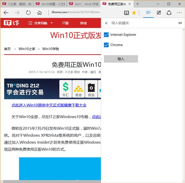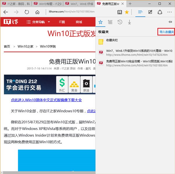 客觀上說,雖然“閱讀列表”更符合現在用戶的使用習慣,但其局限性也十分明顯:只限Edge瀏覽器。而該功能的“前身”收藏夾就顯得更加靈活:可以從其他瀏覽器,比如IE和Chrome導入收藏夾內容。