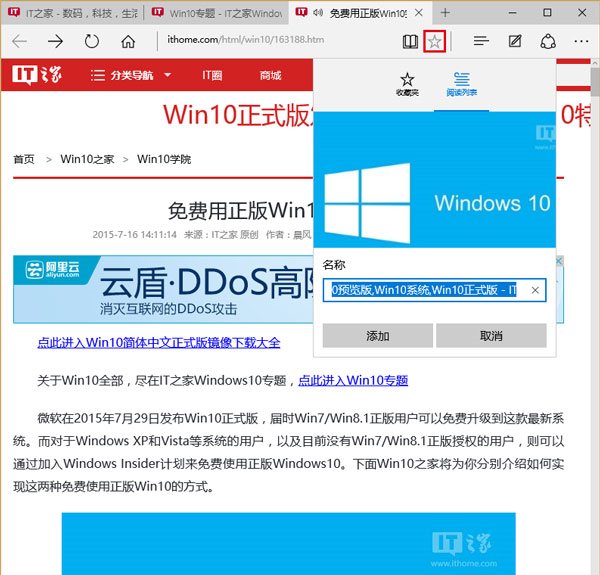 ▲在希望添加到閱讀列表的頁面,點擊“☆”圖標,選擇“閱讀列表”,然后點擊“添加”即可