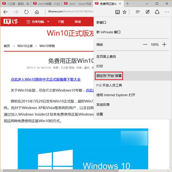 這項功能可以讓用戶把重要的網頁或網站以磁貼的方式固定到開始菜單或者開始屏幕。其實就是相當于在開始菜單或者開始屏幕建立了一個Edge瀏覽器快捷方式,用于打開特定網頁。因此這種磁貼也只能用Edge瀏覽器打開網頁,與默認瀏覽器無關。