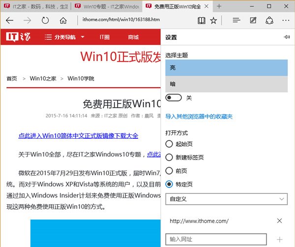 目前Edge瀏覽器有明、暗兩種不同主題,可在瀏覽器設置中更換。黑色主題可以配合“閱讀試圖風格”中的黑色背景在暗光模式下使用,以免明暗對比強烈導致眼部不適。