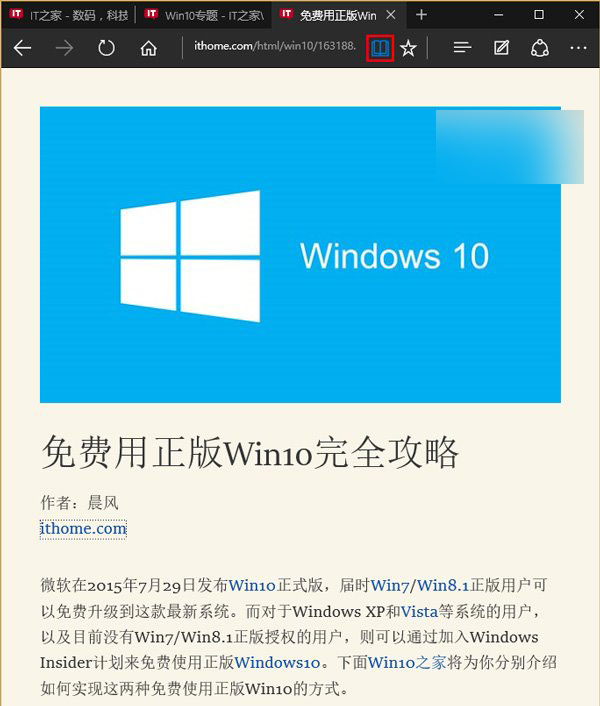 需要注意的是,“閱讀視圖”需要反應時間,在打開支持的網頁(一般為以文章為主體的網頁)后,“書本”圖標并非立即可用。稍等幾秒種后,該圖標變為“點亮”狀態,把鼠標移動到地址欄右側的“書本”圖標上時,會出現“書頁翻動”的動畫,此時點擊該圖標就會迅速切換到“閱讀視圖”,速度還是很快的。若想退出該模式,再次點擊“書本”圖標即可。