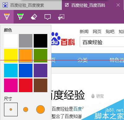 3、鉛筆跟熒光筆點(diǎn)擊之后,都會(huì)依次彈出一個(gè)下拉菜單,可以選擇相對(duì)應(yīng)的顏色以及筆頭的粗細(xì),然后就可以在網(wǎng)頁上自由涂畫了