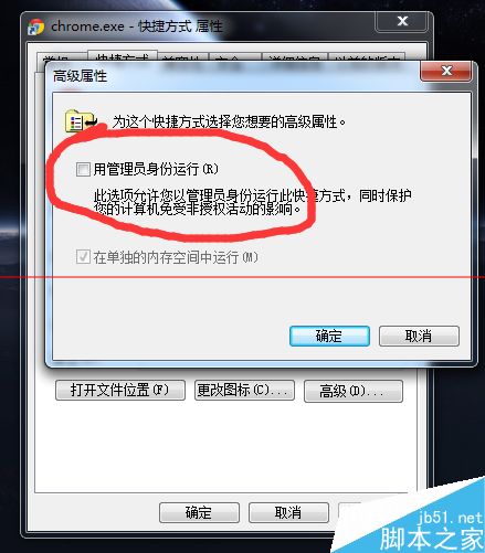 2、你每創建一個Chrome快捷方式(不管是重裝系統創建還是重裝瀏覽器創建還是自主創建),它的權限都會重置,所以每次創建新的Chrome快捷方式都要勾一下那個管理員才行。
