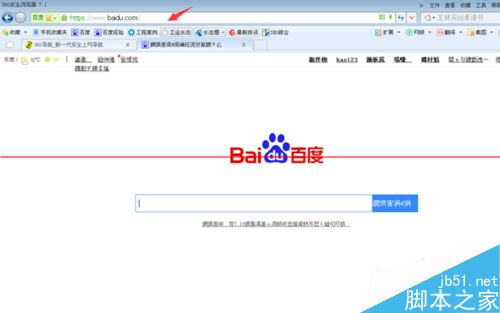 5、進入到360瀏覽器主頁后,我們在它的地址欄中輸入百度網址,進入百度主頁。