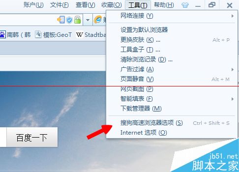 3、我們點擊工具之后找到下邊的搜狗高速瀏覽器選項的按鈕