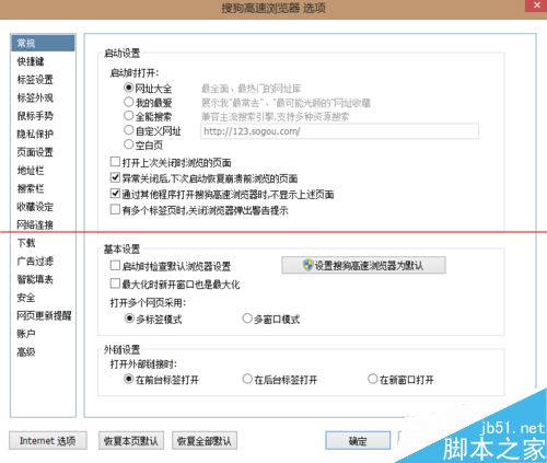 4、直接來到搜狗高速瀏覽器的選項頁面上來