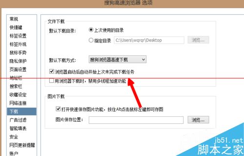 6、我們看到上邊的默認下載方式為搜狗高速下載,勾選下邊的啟動瀏覽器后下載未完成任務。