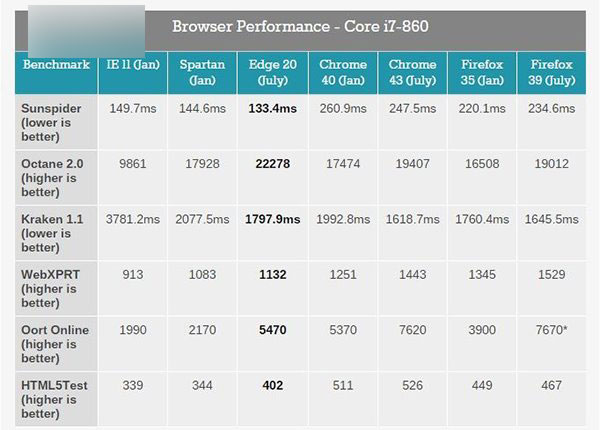 這次測(cè)試由AnandTech評(píng)定,使用其跑分基準(zhǔn)測(cè)試工具,比如SunSpider、Octane 2.0和HTMLTest,測(cè)試設(shè)備是一臺(tái)搭載英特爾Core i7-860處理器電腦。
