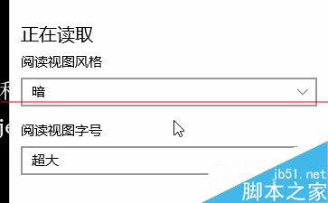5、找到閱讀視圖的設置,調整閱讀模式的風格和字體大小