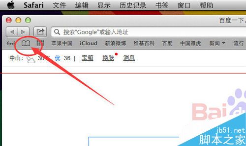 5、然而,如果你不確定網頁真的被收藏了,那么:把鼠標移動到網頁的左上方,找到一個像眼鏡的圖標,然后點擊它旁邊的長得像翻開的書的圖標。為什么我要說眼鏡旁邊?因為那本書真的不像書!