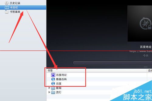6、點開后,我們點擊【書簽欄】,默認是給我們顯示的【歷史記錄】,所以我們才需要點開【書簽欄】這個位置。