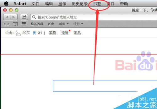 2、我們在網頁的工具欄中,找到【書簽】字樣的選項。然后點擊它