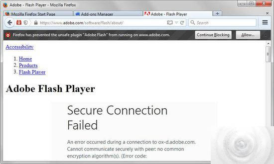 “要求激活”也即Flash在這種情況下的運行完全不受阻止,意味著Flash內容能夠在Firefox瀏覽器被正常訪問。盡管要求另外點擊,這確保網站上代碼在沒有用戶動作的情況下無法自動地利用這一安全漏洞。由于Flash被列入該瀏覽器中的禁止運行清單,用戶無法改變這種狀態。