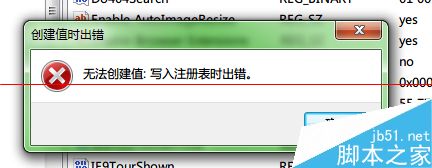 1、為了避免惡意修改IE設置,一般用戶沒有權限修改此路徑下的值,新建鍵值會彈出“無法創建值:寫入注冊表時出錯”,此時可以參考我之前寫的教程。