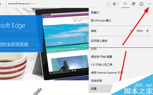 1、在Edge瀏覽器點擊右上角的“更多操作”按鈕,然后選擇“設(shè)置”