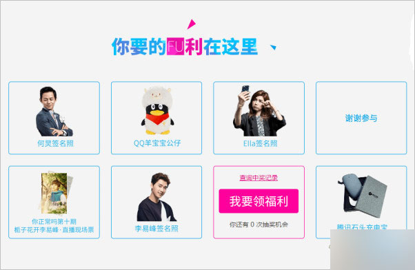 獎品有明星簽名照、QQ公仔、充電寶等禮品將在活動結束后30個工作日內統一發放