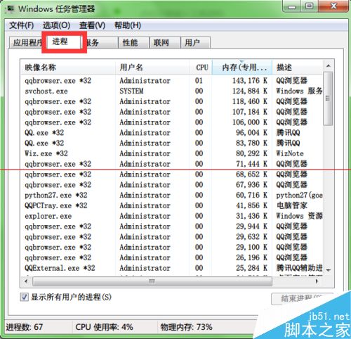 1、執行Ctrl + Shift + Esc組合鍵,打開任務管理器,切換到進程標簽。