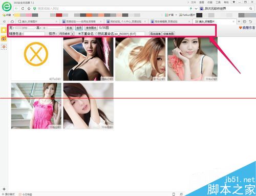 5、同時在選項欄上還有圖片大小篩選的選項,單擊圖片還可以去除不需要的圖片,更改圖片的排序方式,圖片的命名,導出圖片的鏈接,切換視圖等